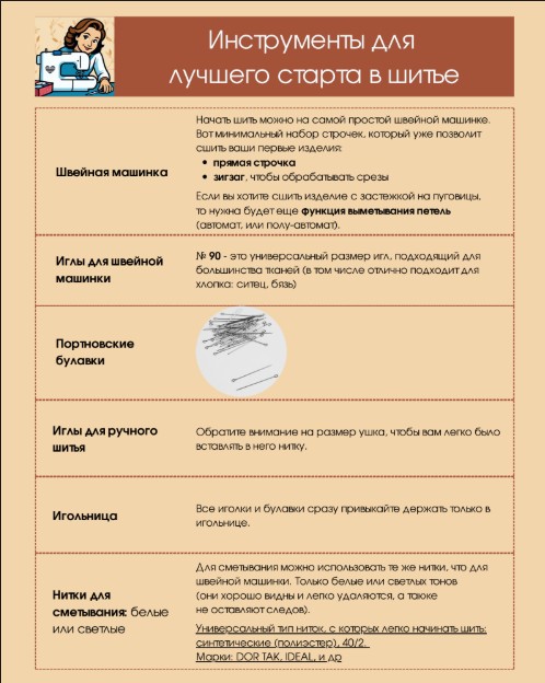 Чек-лист «Инструменты для лучшего старта в шитье»