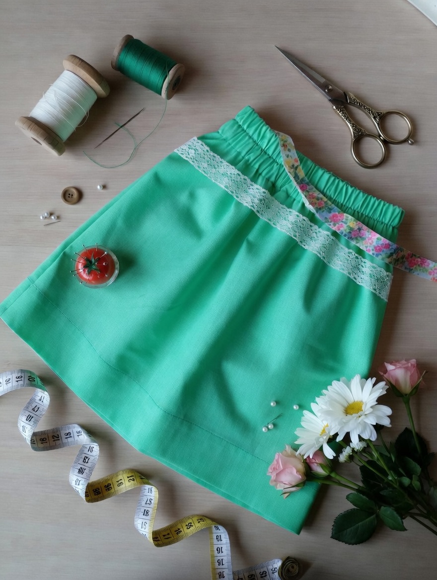 Ты можешь сшить детскую юбочку, или сразу — юбку для себя. Действия будут одни и те же, разница только в размере.